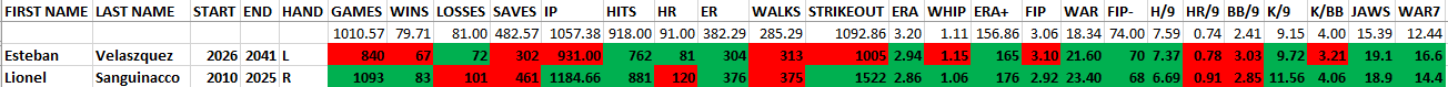 Cheating a bit here and putting 8 guys total because while they got there in rather different ways, these guys have very similar credentials and deserve to be mentioned together. While I am traditionally very anti-reliever for HOF purposes, how a guy like Sanguinacco can not be in is confusing even to me. The guy was quite simply one of the most dominant relievers of his time and hitters could really do nothing but pray against him. Velasquez did not get much support in his time on the ballot, but if you look at the numbers they are actually much kinder to him than maybe the voters gave him credit for.