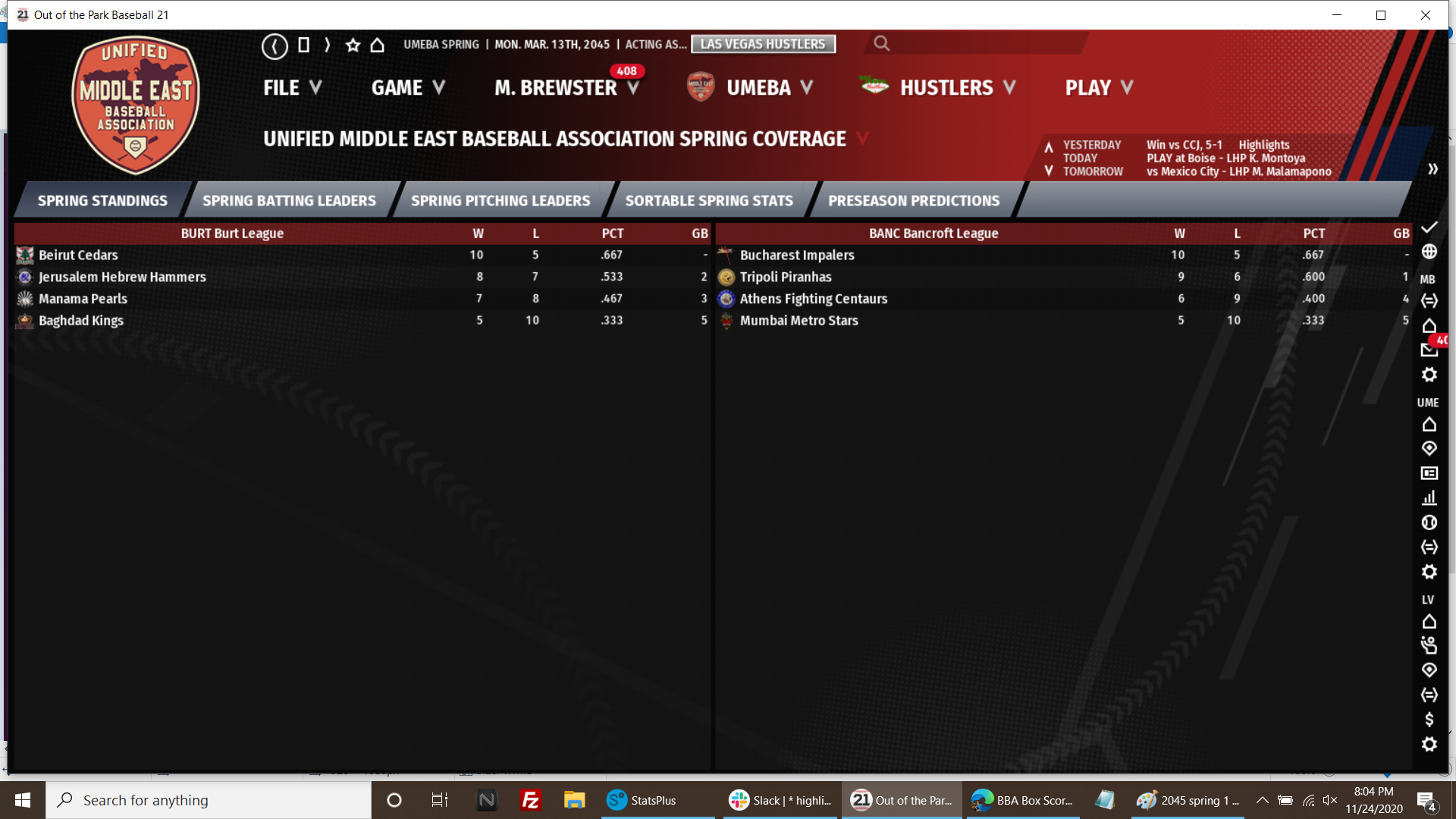 Re: 2045, Spring Training Sim #1 Chatter