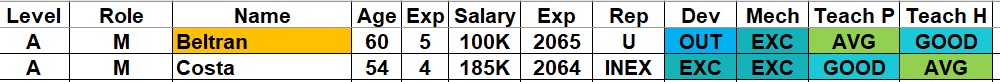 Back at Redwood City, two of the three replacements have already been named. Replacing the former manager , Luis Beltran, is Jose Costa. Beltran retired at the end of the 2063 season.