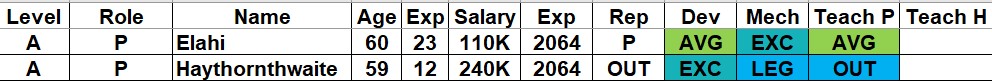 The other replacement is putting Zak Haythornthwaite in place of former pitching coach Sultan Elahi. Zak has 12 years of experience with five of those years including post season play. Zak spent his last two years with the Tokyo Pearls in the GBC. The snapshot below shows a comparison between Zak and Elahi.